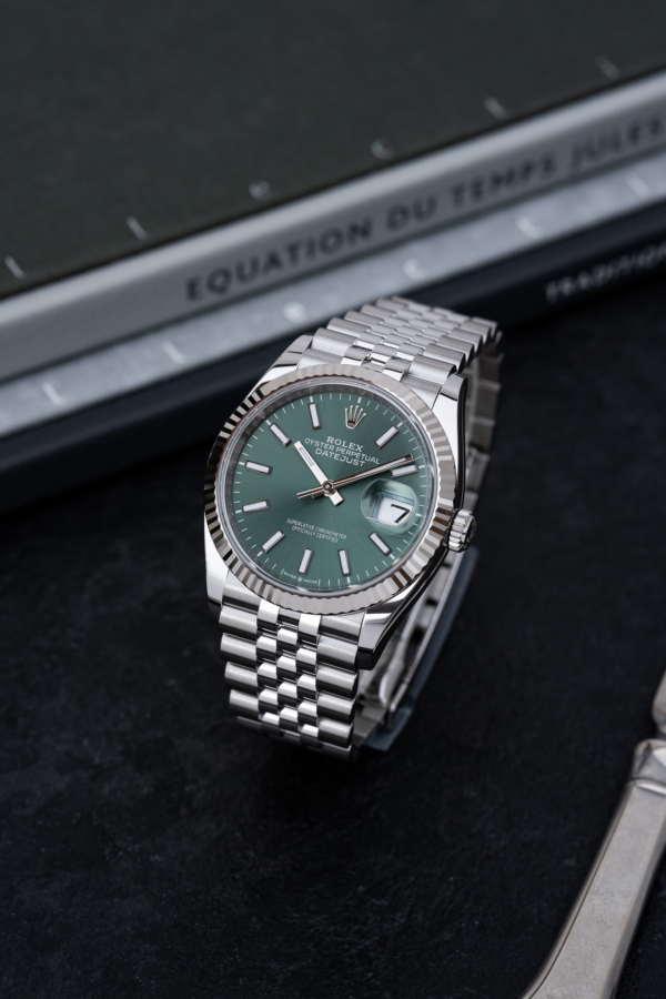 La Rolex Datejust 126234, avec son superbe cadran vert menthe, est un classique intemporel qui respire la sophistication et le style. Fabriquée à partir des matériaux les plus nobles et conçue avec précision, cette montre est une véritable icône du luxe. Le cadran menthe ajoute une touche d’élégance et de raffinement, tandis que le bracelet Jubilee emblématique assure un ajustement confortable.