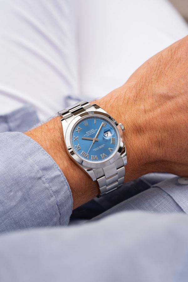 Cette Datejust 41mm, lunette lisse & Osyer avec cadran bleu Azzurro est une configuration peu commune et très prisée. Pilier du catalogue Rolex depuis toujours, la Datejust est le mélange parfait de l’élégance et de la sportivité.