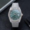 Cette Datejust 41 vert menthe de 2024 est dans un état proche du neuf est accompagnée de son « full set ».