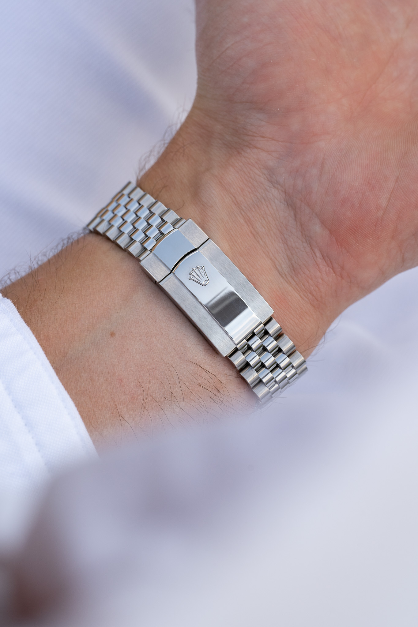 Cette Datejust 41mm, lunette cannelée & Jubilee avec cadran vert menthe est l’apogée de la Datejust moderne. Pilier du catalogue Rolex depuis toujours, la Datejust est le mélange parfait de l’élégance et de la sportivité. Cette nouvelle couleur introduite en Mars 2022 met la couleur emblématique de la marque au gout du jour avec une teinte menthe des plus fraiches.
