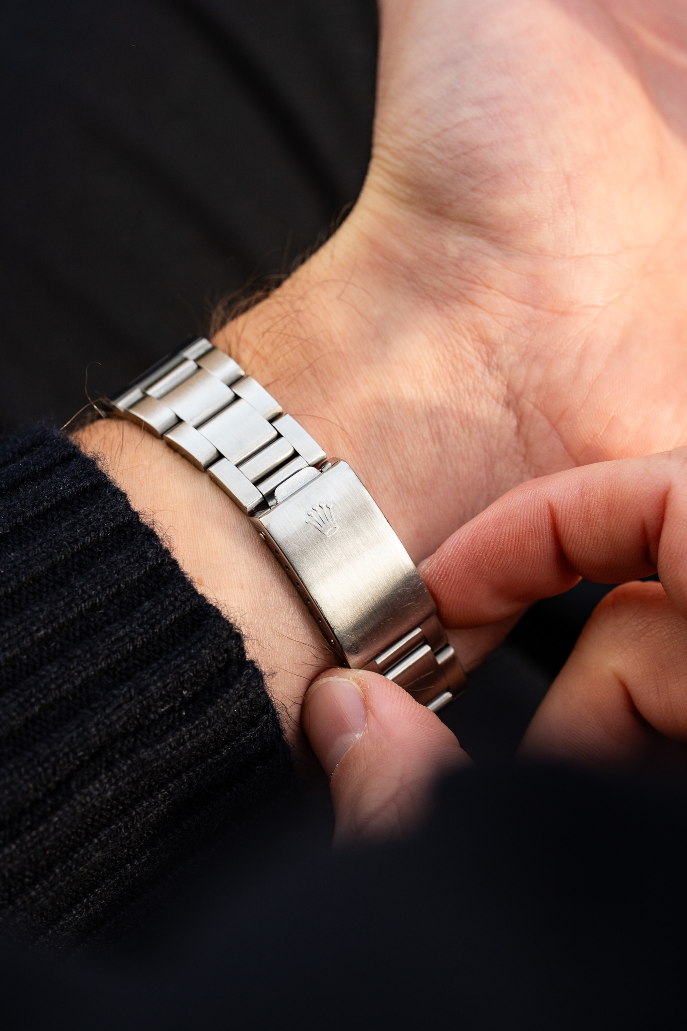 Dotée de la complication GMT caractéristique de Rolex, cette référence 16750 permet au porteur de suivre deux fuseaux horaires simultanément, ce qui en fait un outil indispensable pour les voyageurs et les pilotes. Le robuste boîtier Oyster, étanche, est associé au bracelet du même nom, offrant un équilibre entre durabilité et confort au poignet. Cette combinaison souligne l’engagement de Rolex en faveur de la forme et de la fonction.