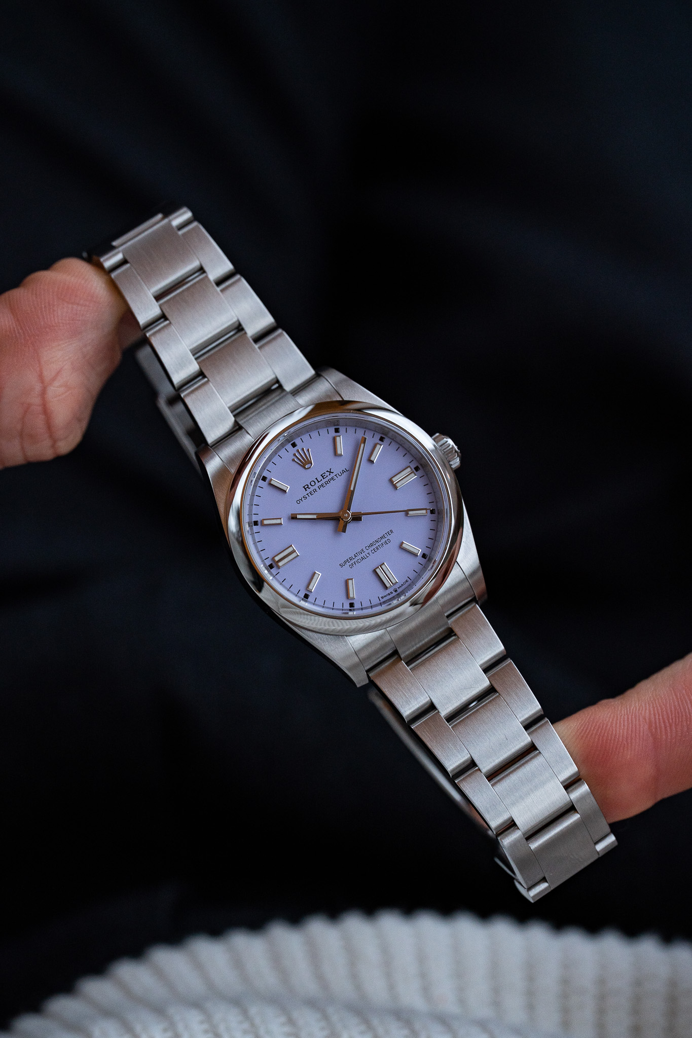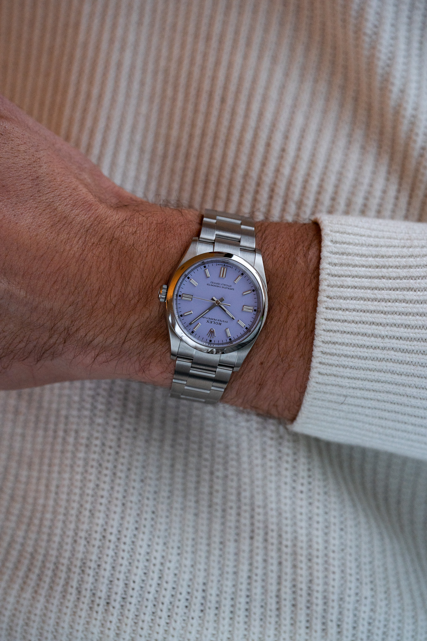 Depuis la renaissance haute en couleur de 2020, la collection Oyster Perpetual n’a cessé de séduire une nouvelle génération de passionnés. En 2025, Rolex poursuit cette exploration chromatique avec l’introduction du cadran Lavender, une nuance douce et contemporaine qui s’inscrit parfaitement dans l’évolution esthétique de la ligne. Cette nouvelle teinte apporte une fraîcheur subtile, à la fois moderne et parfaitement cohérente avec l’identité minimaliste de l’Oyster Perpetual.